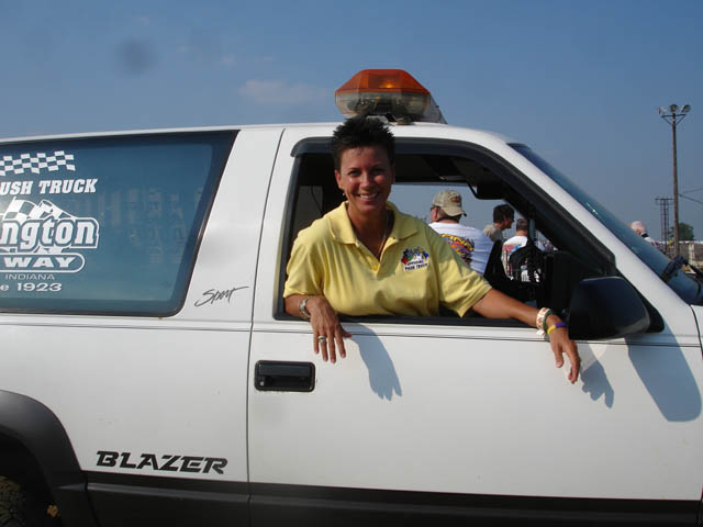JOE CHAMBERS A MEMBER OF THE INDIANA MILITIA PUSHES AND ACTS AS THE PACE TRUCK FOR MANY OF THE MIDWEST SPRINT CAR
