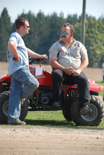 FELLOW PUSHER RANDY CRONK ON THE RIGHT TALKING TO MARK "NITRO" NICK LANDON WHO IS THE GRANDSON OF MICHIGAN HALL OF FAME