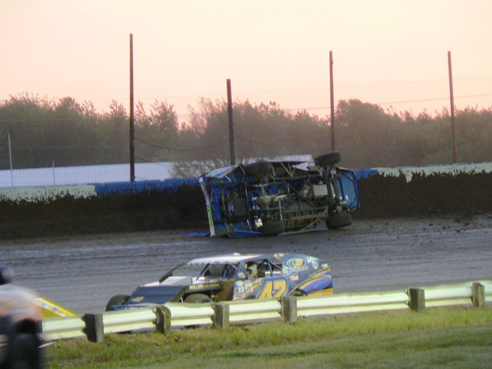 JOE GARVER PUSHING OFF #7 BRYAN CLAUSON..(Glenda Lacer photo)