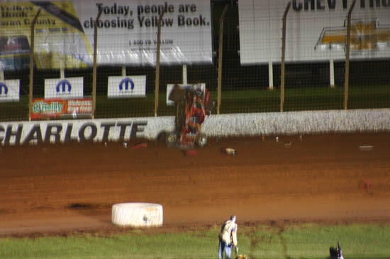 #20 DRIVEN BY JAY DRAKE TOOK A TUMBLE IN TURN ONE...LOWES SAFETY CREW WERE QUICK TO RESPOND..